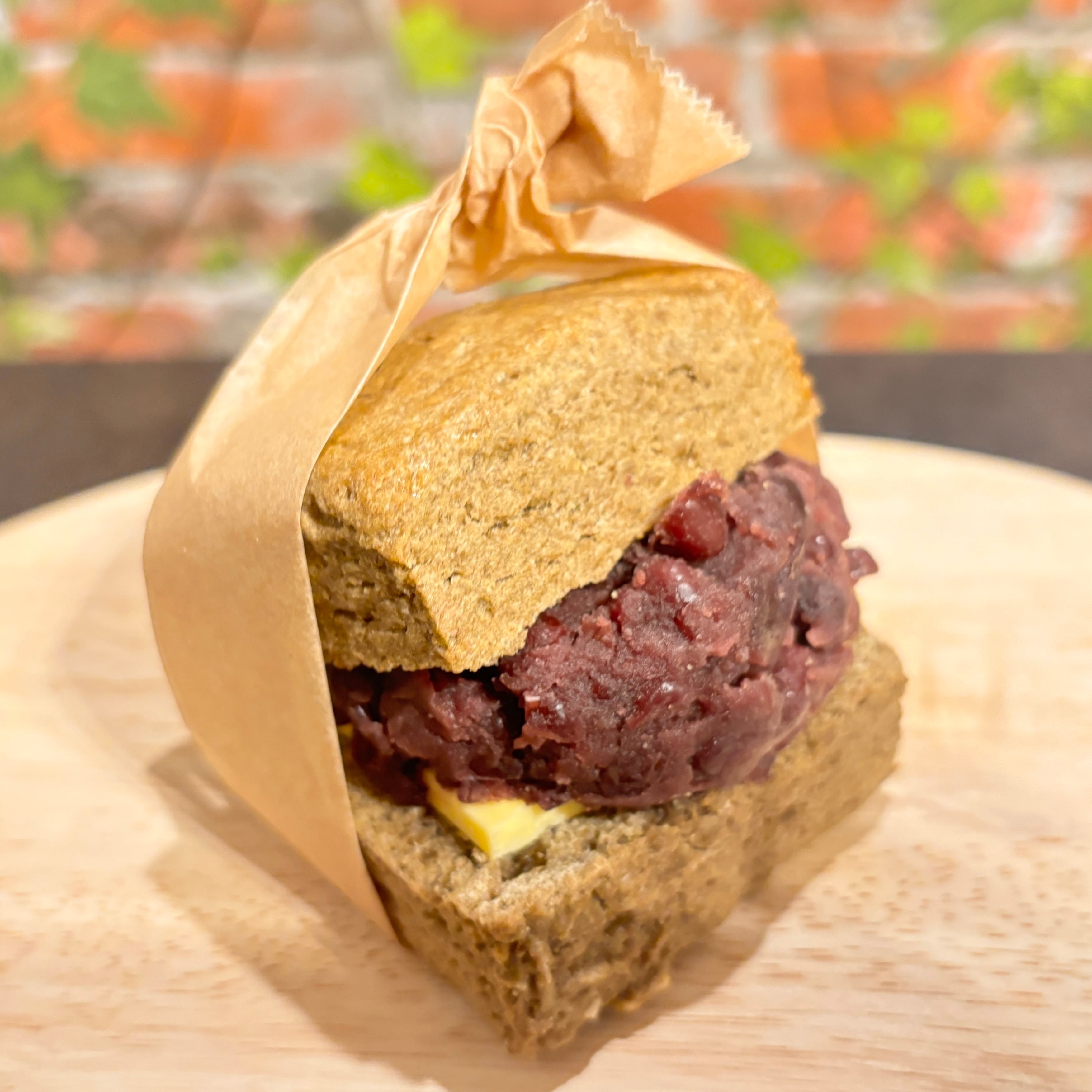●ほうじ茶特製あんバタースコーンサンド・・・ほうじ茶スコーン生地に自家製小倉あんと有塩グラスフェッドバターをサンドしました。ほうじ茶の風味とホクホク豆の特製あんに身体にもよく、さっぱりとしながらミルクのコクを感じられるグラスフェッドバターの味わいをお楽しみください。
