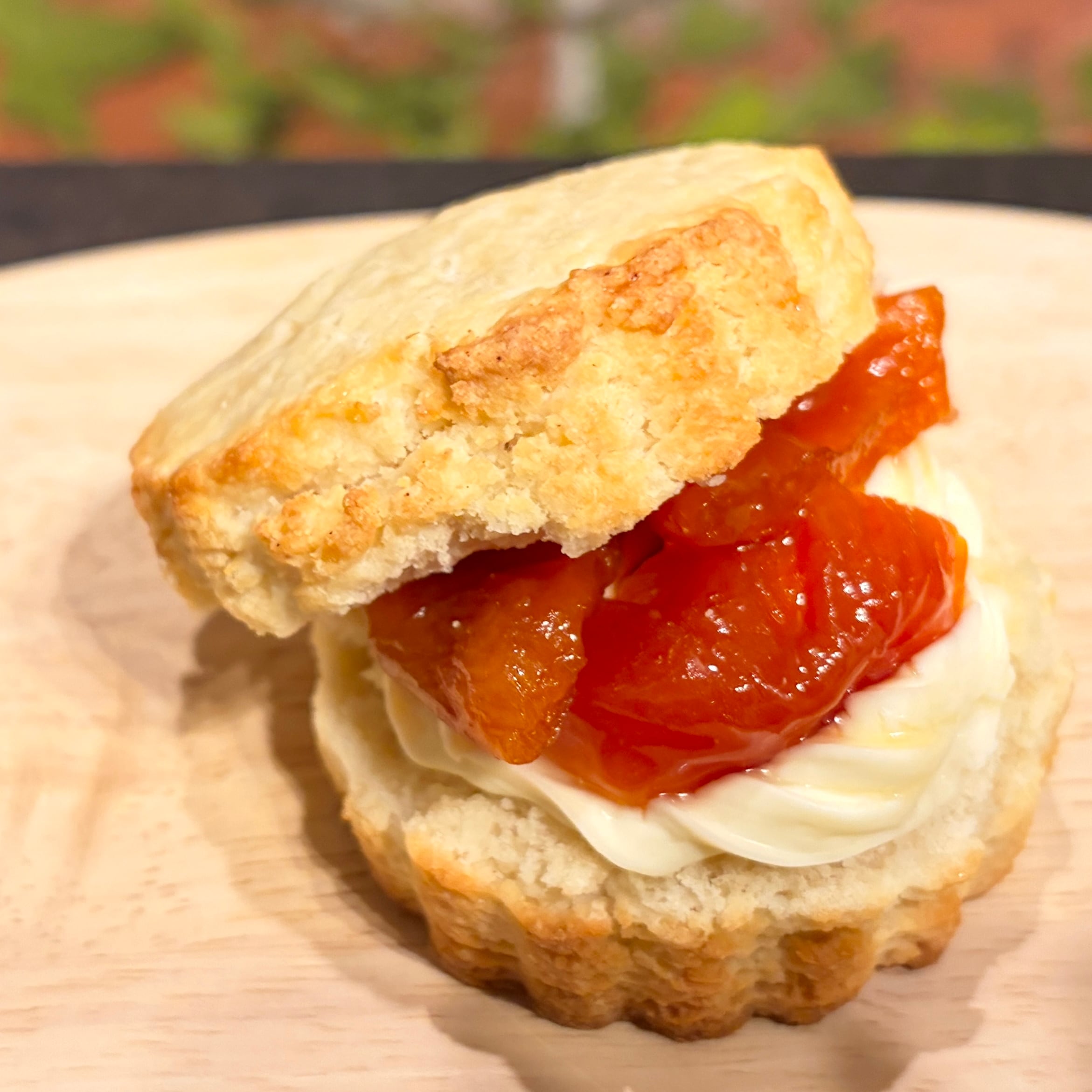 ●プレーンスコーン・・・素材にこだわった外はさっくり、中はしっとりスコーンです。お好みでクリームやジャムをつけてお茶の時間をお楽しみください。